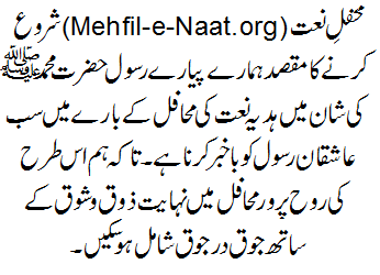 Mehfil-e-Naat Program Detail : 27th January 2015 (Tuesday) after Isha Prayer View detail...